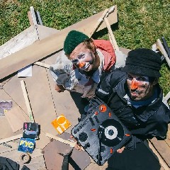 « Ce spectacle clownesque et circassien tout terrain raconte l’histoire de deux personnages excentriques et de leur inlassable optimisme face à toute difficulté, y compris l’apocalypse. L’apocalypse n’arrive pas tous les jours : il faut fêter ça, ensemble. Entre acrobatie, rap, exhumation de vinyles et toujours avec humour, ce spectacle invite le public à une célébration absurde, animée par deux « masters of cérémonies » écervelés qui s’évertuent à trouver comment organiser cet événement unique. »